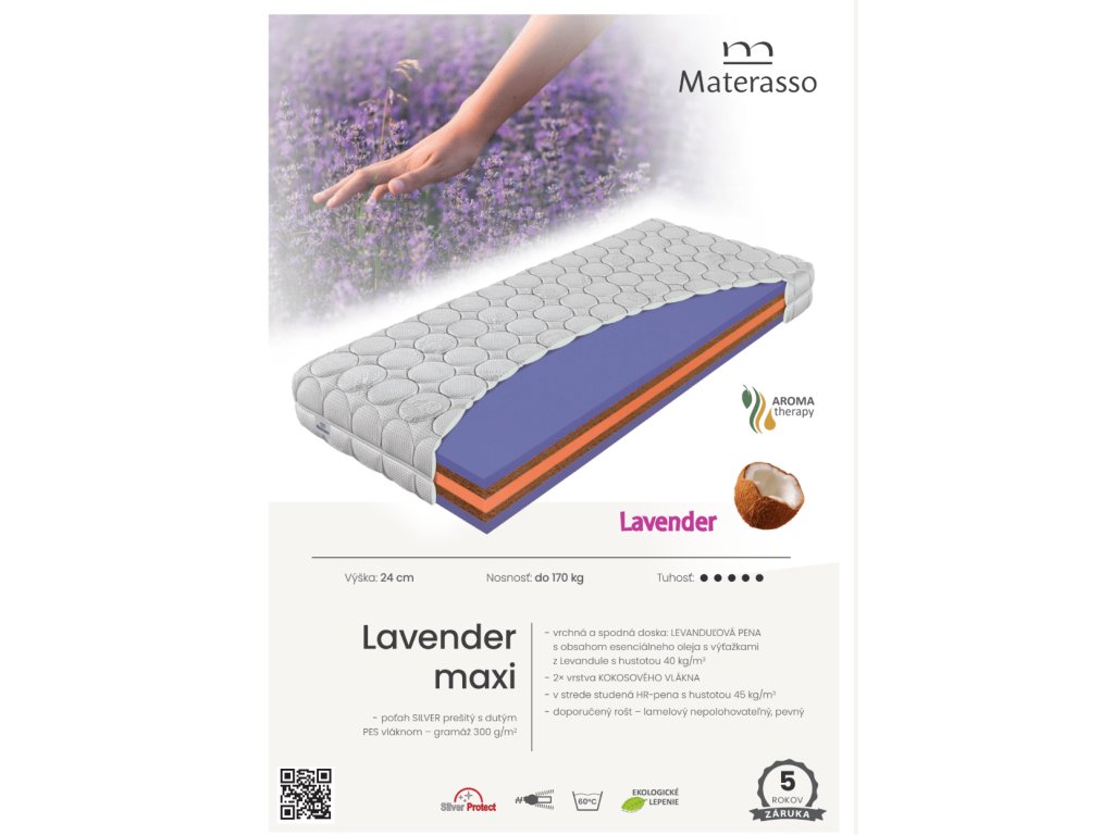 Extra tvrdý matrac s vysokou nosnosťou, ideálny pre tých, ktorí potrebujú pevnú oporu pre chrbticu a minimálne zaborenie. Levaduľová pena impregnovaná esenciálnym olejom z tejto liečivej byliny dokáže uvoľniť stres a bolesti hlavy. Levanduľa je už od pradávna známa svojimi pozitívnymi účinkami na zdravie tela i mysle.