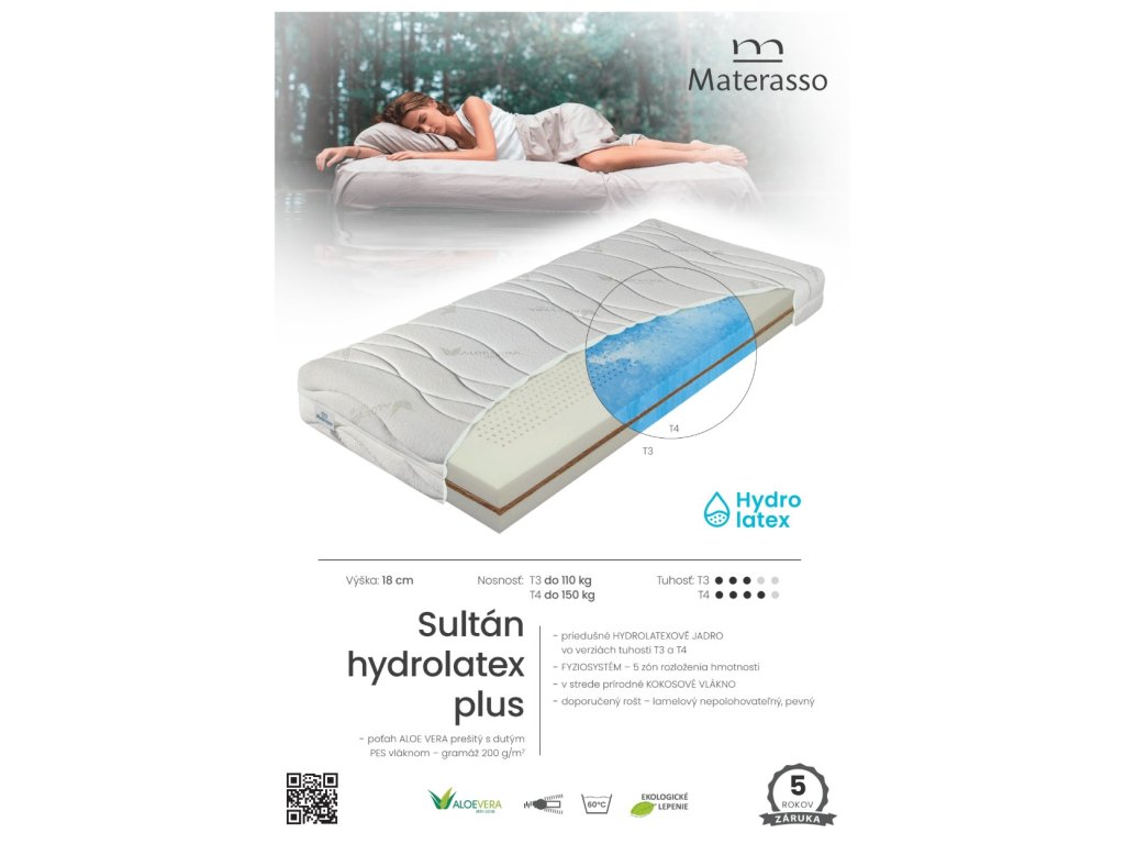 Pena Hydrolatex: je pokrokový materiál, ktorý sa používa do pocitovo tuhších matracov. Je vyrobený z kombinácie komfortnej peny a latexu. Spája v sebe výhody oboch materiálov, pričom si zachováva prirodzenú tuhosť a dlhú životnosť. Hydrolatex je priečne perforovaný, čím je dosiahnutá výborná vzdušnosť a tým aj vysoká hygiena počas spánku. Materiál má 5 ortopedických zón tuhosti pre zlepšenú oporu chrbtice.