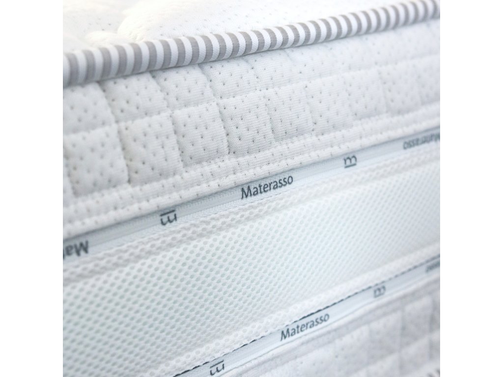Pena EVOOGREN: je napustená výťažkom z ALOEVERA, ktorý prirodzene zvyšuje hygienu matraca. Tieto výťažky likvidujú roztoče a baktérie. Pena EVOGREEN, používaná firmou MATERASSO je jediný originál na trhu s garantovaným zložením peny s použitím prírodnej zložky vo forme ricínového oleja a mikrokapsulami ALOE VERA.
