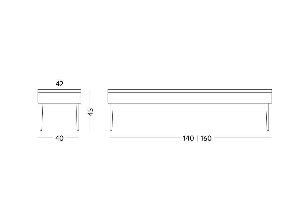 Lavičku Bench je možné vyrobiť len s drevenými nohami Bench alebo kovové nožičky Industry.