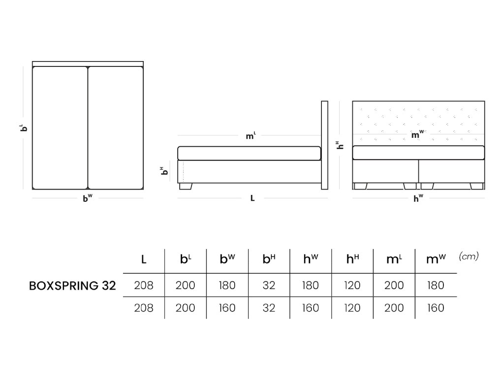 - Výška boxpring / prevedenie boxpring Mobil / výška boxpringu bez nožičiek: 32 cm